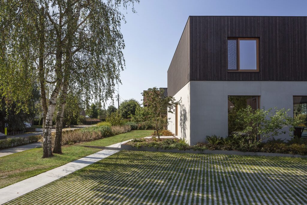 De eigenaars van deze nieuwbouwwoning zochten een tuin die hun architecturale woning weerspiegelt én ruimte biedt aan het hele gezin. Strakke betonelementen en rechte lijnen vormen de basis, terwijl de weelderige beplanting de harde vormen verzacht en warmte toevoegt.